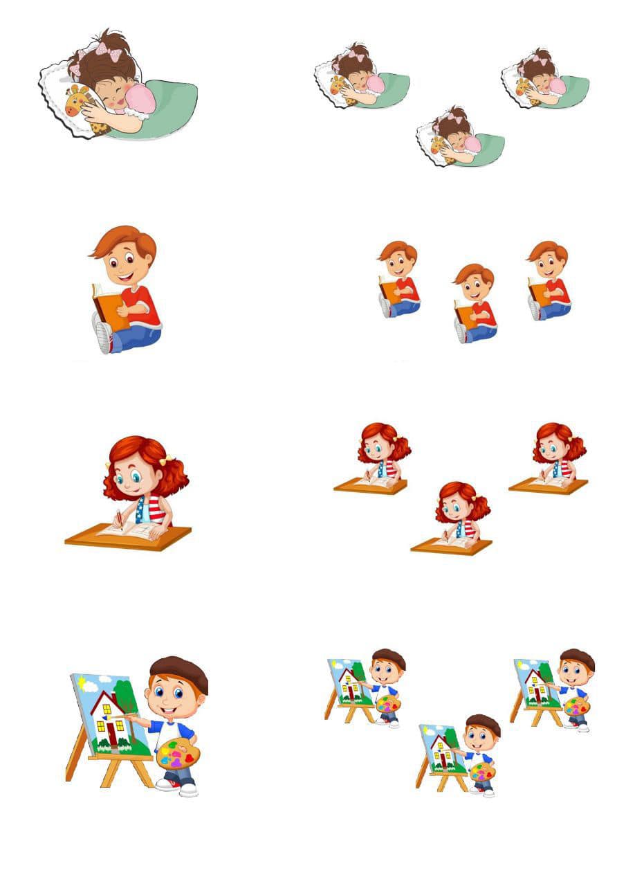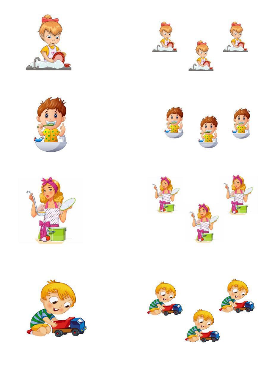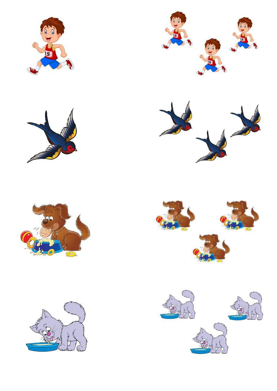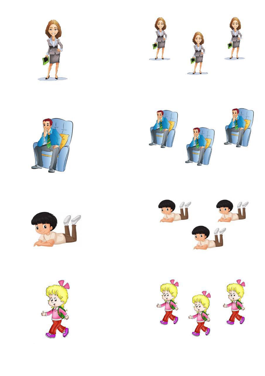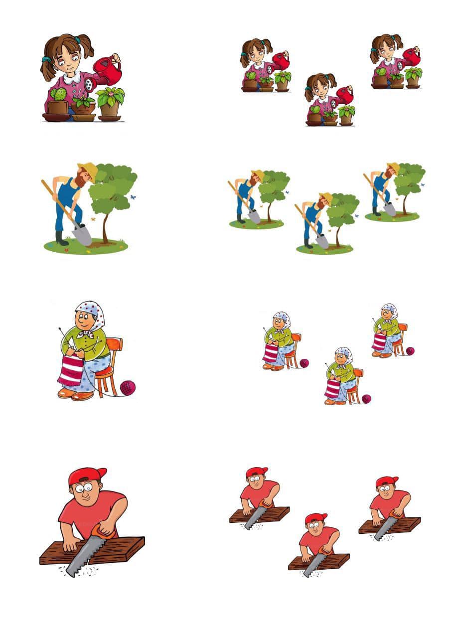 Запропонуйте дитині розглянути картинки та розказати, хто що робить (він сидить, а вони сидять; вона іде, а вони ідуть).