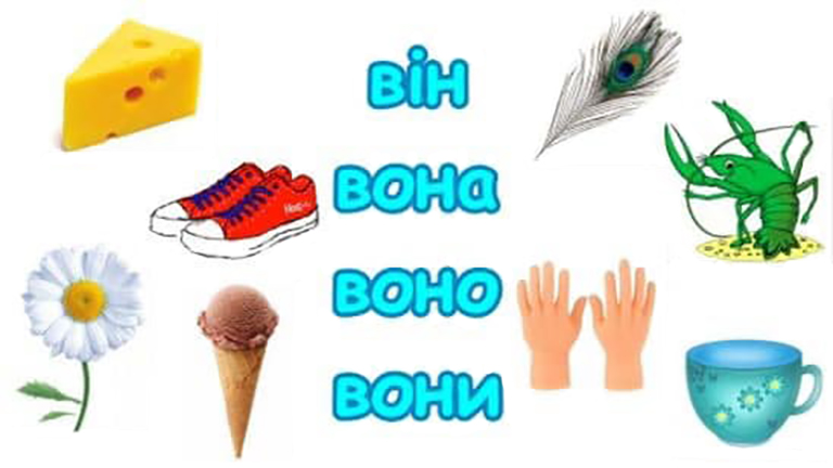 Ще на початку формування граматичної сторони мовлення діти припускаються помилок. Особливо це стосується дітей, які мають певні мовленнєві порушення. Ви часто можете почути від них неправильне узгодження слів «моя морозиво», «мій ліжко». Щоб запобігти таким недолікам, пограйте з дитиною в гру. Запропонуйте виконати завдання, де дитина має замінити назву картинки словом ВІН, ВОНА, ВОНО або ВОНИ. Це доцільно робити підбираючи ознаки до кожного предмета. Таким чином ви не лише вправляйте дитину в правильно му узгодженні слів, а ще й збагачуєте словниковий запас дитини. Наприклад, це банан. Який він? Він смачний, він жовтий, він довгий. Це сонечко, яке воно? Воно жовте, воно яскраве, воно кругле. Потім запропонуйте підібрати назви картинок, про які можемо сказати МОЯ, МІЙ, МОЖ, МОЇ: моя чашка, моя ромашка, мій банан, мій метелик, мої кеди, мої джинси, моє сонечко, моє морозиво.