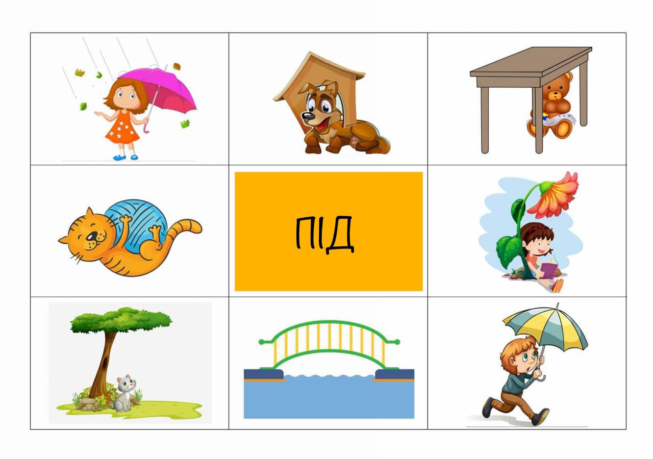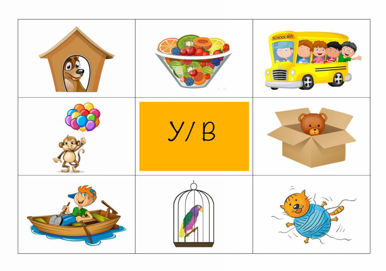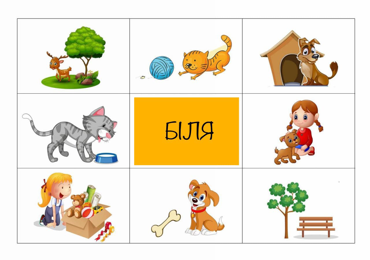 Запропонуйте дитині розглянути картинки та розказати що/хто де знаходиться використовуючи слова В/У, ПЕРЕД, ЗА, БІЛЯ, МІЖ, НАД. Багато цікавих завдань та розвиваючих відео ви знайдете на ютуб каналі Логопед#Дія.Навчаємось граючись! Поширити