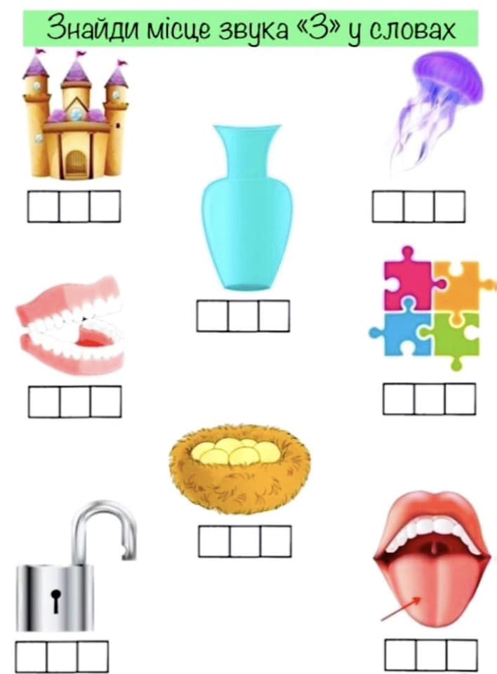 Запропонуйте дитині визначити місце звука у слові та зафарбувати відповідний квадратик (на початку, в середині або в кінці) Підписуйтесь на ютуб канал Логопед#Дія Там Ви знайдете цікаві відеоігри для розвитку дітей, гарного перегляду! Поширити