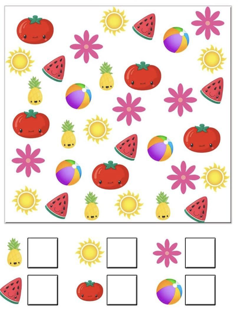 Запропонуйте дитині знайти та порахувати різні малюнки.