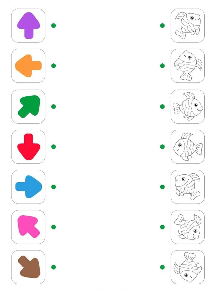 Запропонуйте дитині поєднати стрілочки з напрямком руху та рибок, що рухаються в тому ж напрямку.