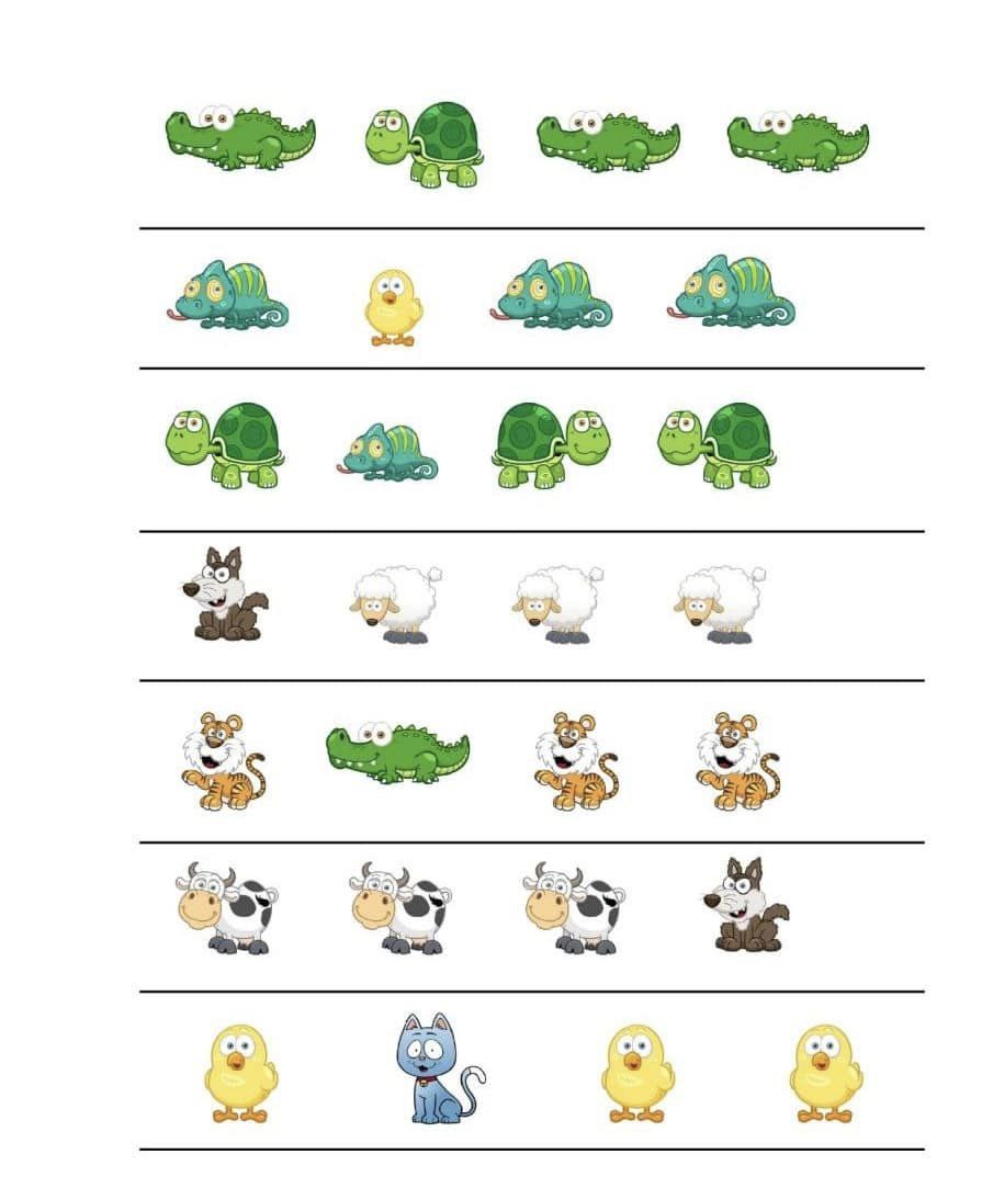 Запропонуйте дитині знайти в кожному рядку зайву картинку та пояснити свій вибір.