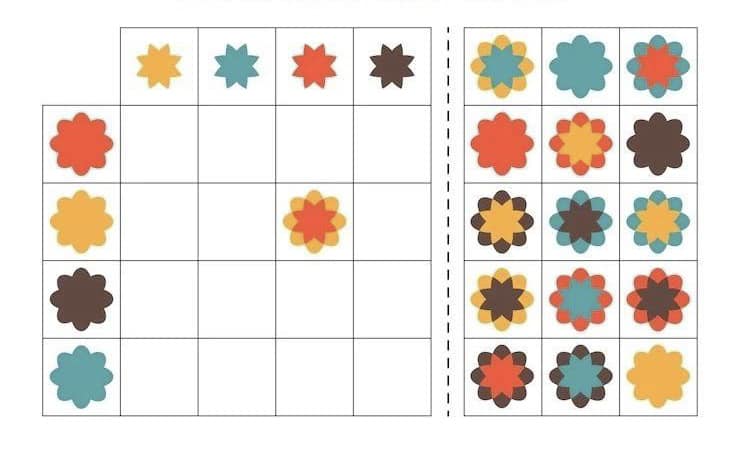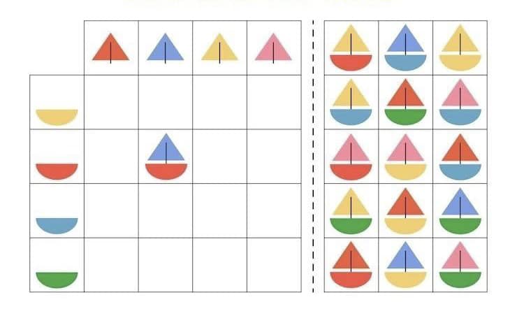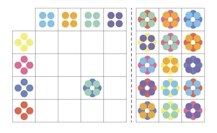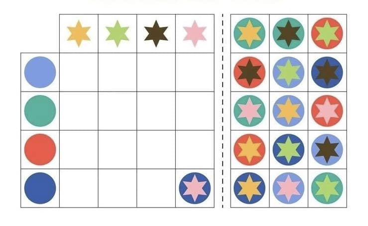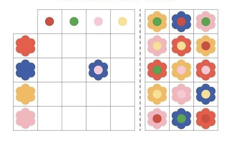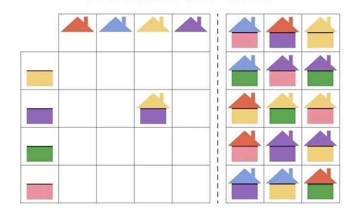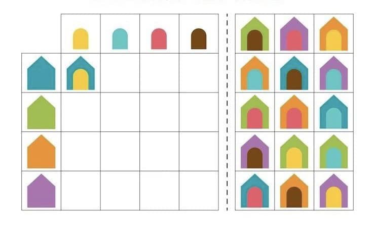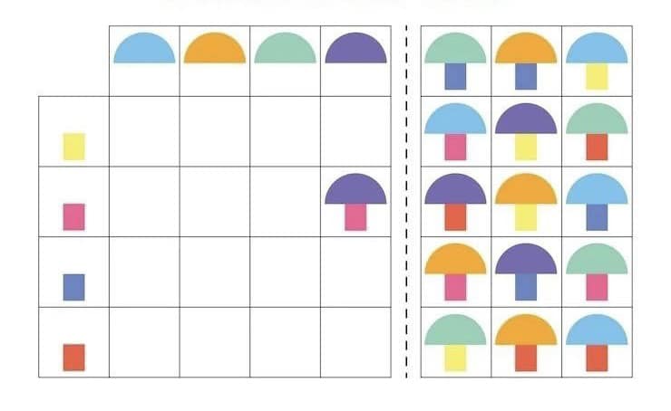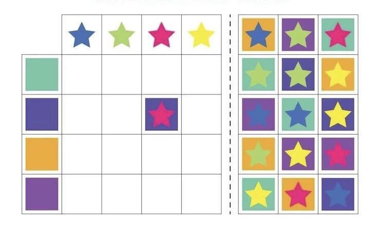 Розвиток зорово-просторового орієнтування, логічного мислення, уяви. Роздрукуйте, розріжте маленькі картки та запропонуйте дитині заповнити таблицю. Поширити