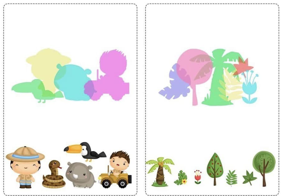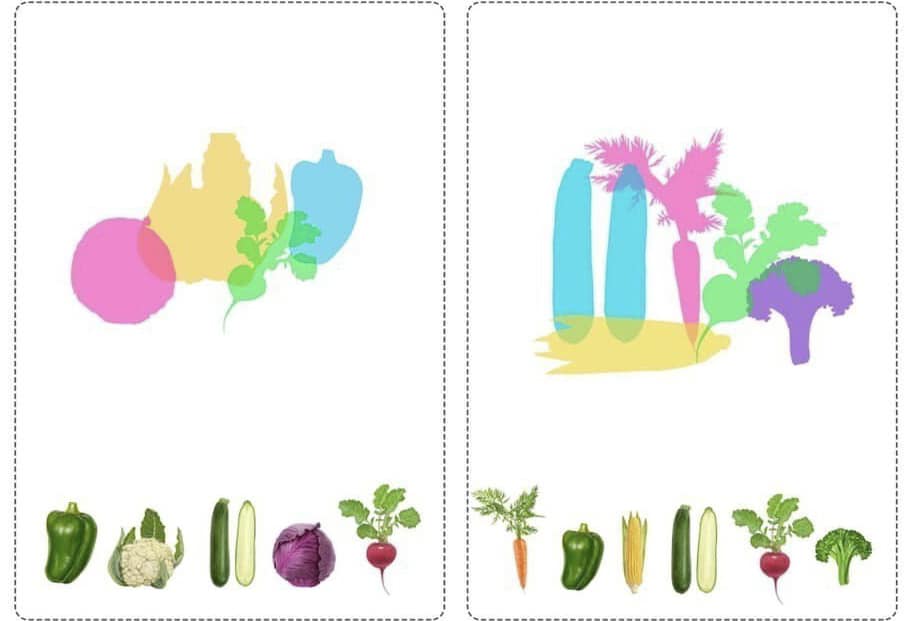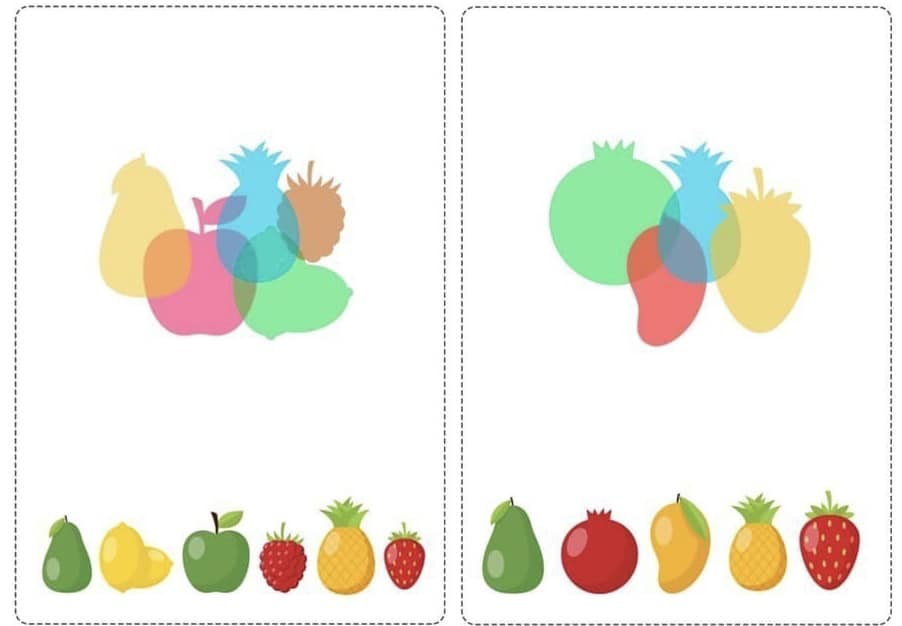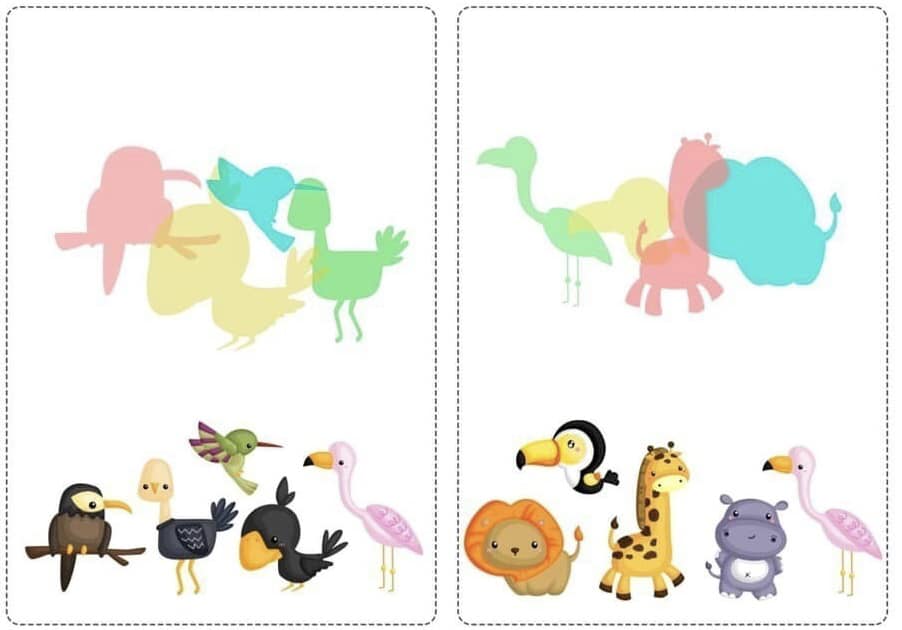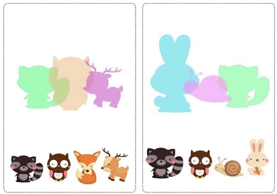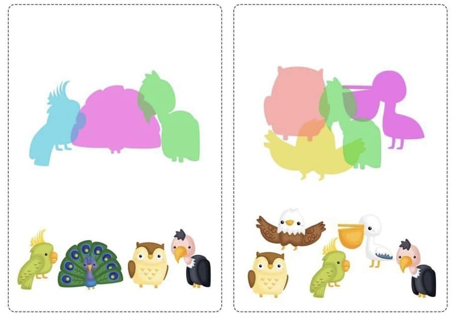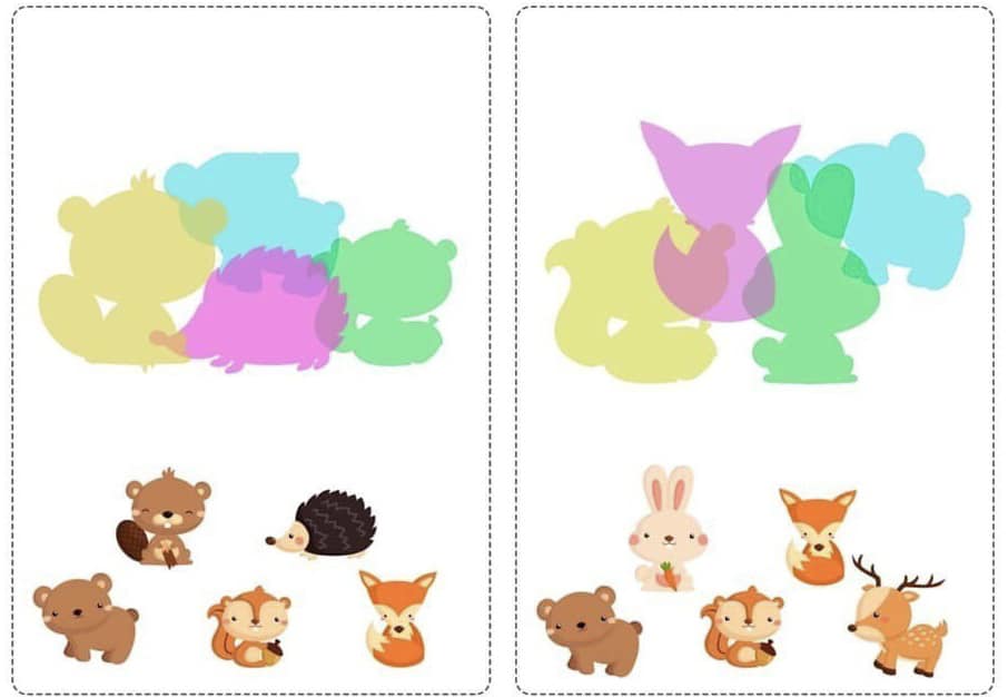 Запропонуйте дитині співвіднести тіні з зображеннями та знайти зайву картинку.