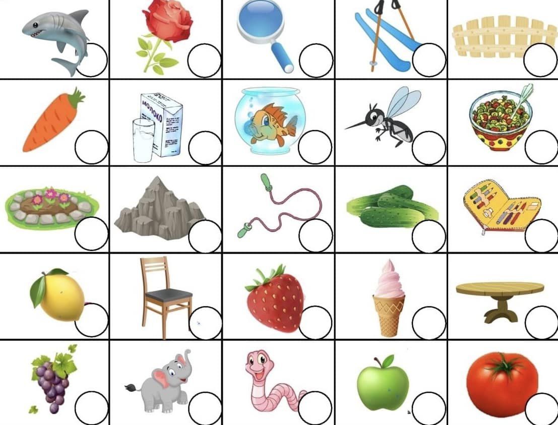 Запропонуйте дитині визначити, який звук – Р або Л є в назві кожного малюнка. Якщо дитина вже вміє писати букви, нехай напише їх в кружечках, поряд з малюнком, а якщо ні, то запропонуйте розкласти камінці (помпони, ґудзики тощо), наприклад, якщо в словах є звук Р – кладемо червоний камінчик, якщо звук Л – блакитний.